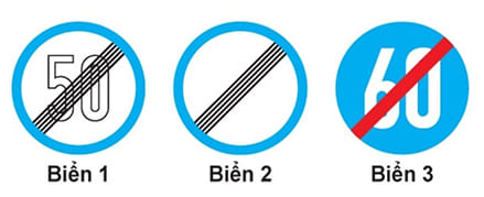 Câu 436. Hiệu lực của biển "Tốc độ tối đa cho phép" hết tác dụng khi gặp biển nào dưới đây?