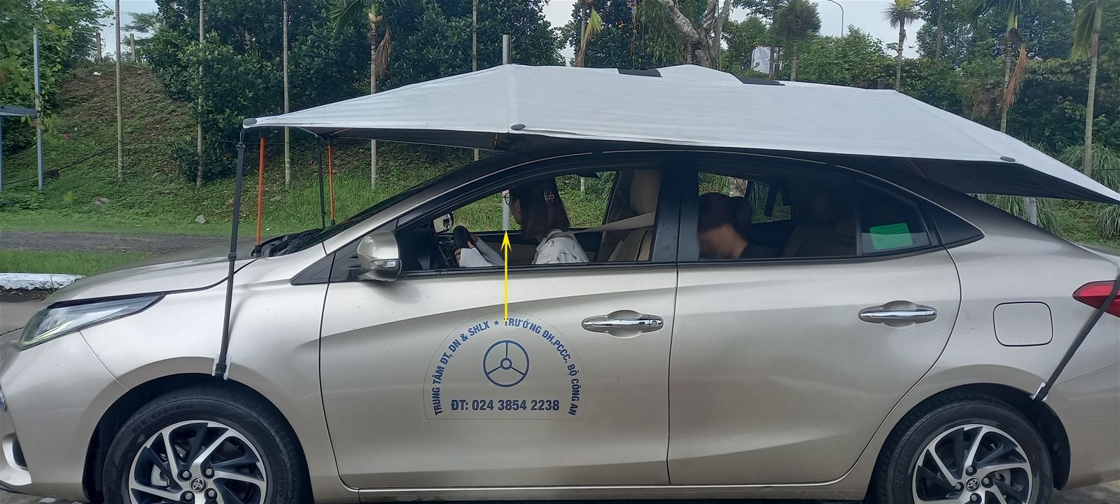 Sân PCCC thực hiện tương tự như trên (đi qua khoảng 25cm), sử dụng vạch dưới mặt đường hoặc cột bên phải nhưng chỉ bị tính là xe đã dừng khi vận tốc bằng 0.